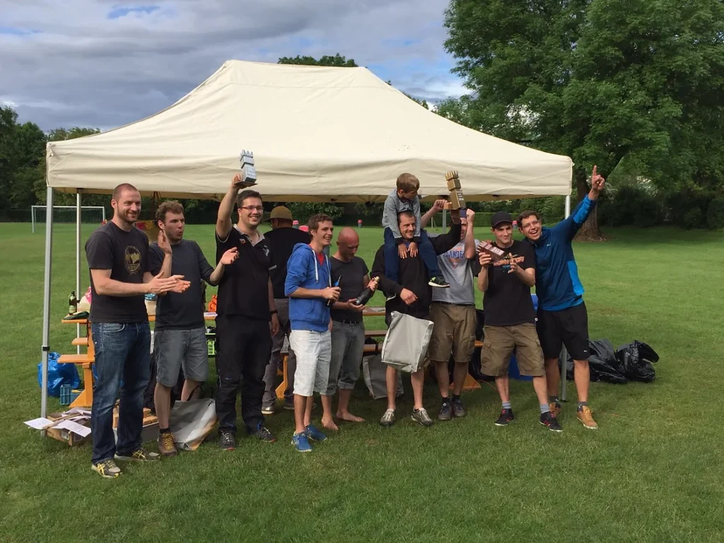 Die Sonnenkönige (feat. Stiwi) spielten heute nicht ihr bestes Turnier in Belgien. Nichtsdestotrotz reichtes es ins B-Final wo sie auf die wilden KCUA-Jungs trafen. Das Spiel entschied Foyer-United mit 2:1 für sich. Ein Pokal konnte dennoch ergattert werden: Der, der trinkfreudigsten Kubber 😉